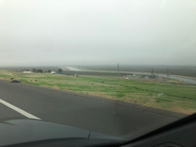 Fog dominated the experience of the second segment as well, from Bakersfield to Palo Alto, especially in the early morning hours. However, as I reached the I-5 corridor, the layer of condensation lifted slightly, forming more of a low stratus cloud deck. Beneath it, I could see the bright green, optimistic grasses and rolling hills of the southern Central Valley, the California aqueduct system, and the vast network of electric transmission lines crisscrossing the highway.